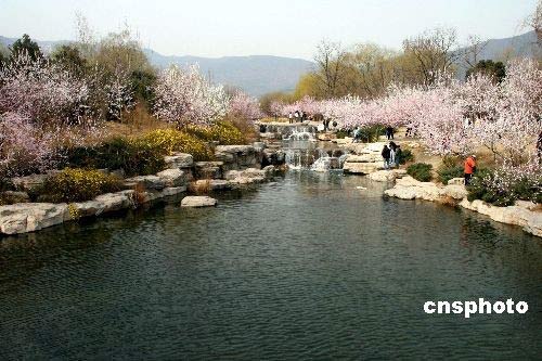 3月20日,北京植物園桃花盛開迎春爭艷,吸引了不少游客。中新社發(fā) 李遠(yuǎn)志 攝