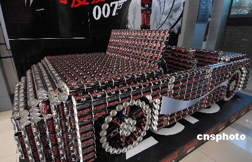 2008年11月5日,一輛由數(shù)百只飲料空易拉罐組成的“汽車(chē)”出現(xiàn)在杭州街頭,頗受市民關(guān)注。中新社發(fā) 引煒 攝