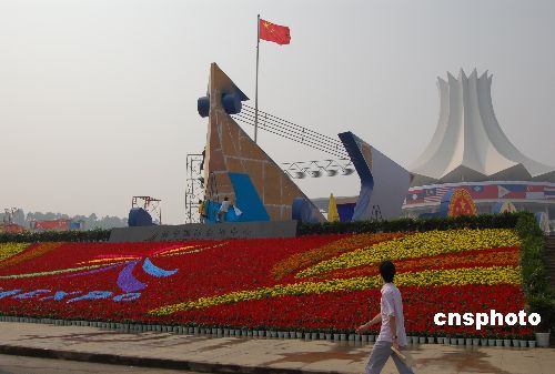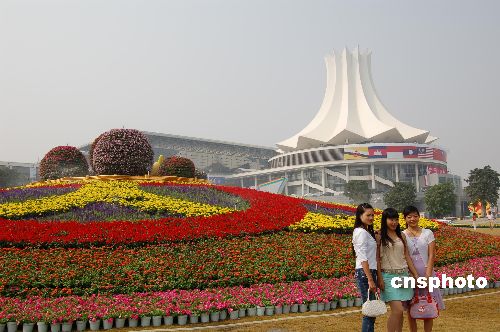 十月二十六日,廣西南寧國際會展中心花團(tuán)錦簇,迎接即將于十月二十八日至三十一日舉行的第四屆中國—東盟博覽會和中國—東盟商務(wù)與投資峰會以及二〇〇七年南寧國際民歌藝術(shù)節(jié)。中新社發(fā) 劉萬強(qiáng) 攝