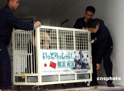 10月28日下午,經(jīng)過(guò)近兩天長(zhǎng)途飛行的旅日大熊貓雙胞胎“隆浜”和“秋浜”回到了故鄉(xiāng)成都,將在成都大熊貓繁育研究基地開始新的生活。按照國(guó)家規(guī)定,它們將在這個(gè)新家經(jīng)過(guò)二至三個(gè)月的隔離檢疫以及飲食、氣候、環(huán)境等方面的調(diào)整,之后再與中外游客見(jiàn)面。中新社發(fā) 魏姝 攝
