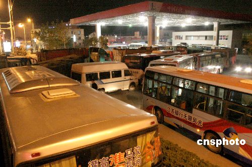 10月29日20時許,在江蘇連云港市區(qū)一加油站,加“0號”柴油的車輛排起長龍。連日來,該市出現(xiàn)“0號”柴油供應(yīng)緊張局面。據(jù)了解,由于近期國際油價居高不下,導(dǎo)致一些煉油廠生產(chǎn)減少,加上最近是農(nóng)忙時節(jié),需求量較大,造成了此次柴油供應(yīng)吃緊的局面。中新社發(fā) 王振 攝