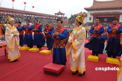11月1日,第九屆中國(guó).湄州媽祖文化旅游節(jié)在媽祖故鄉(xiāng)福建省莆田市湄州島隆重開(kāi)幕,來(lái)自海內(nèi)外一萬(wàn)多人參加本屆湄州媽祖文化旅游節(jié)。中新社發(fā) 劉可耕 攝