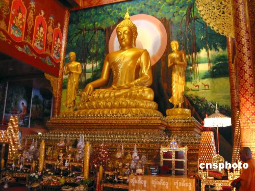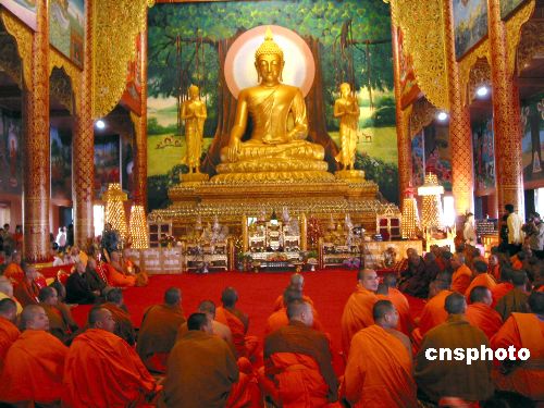 十一月三日上午,來(lái)自中國(guó)以及東南亞各國(guó)的一百零八位佛教界高僧大德,在位于西雙版納州景洪市,共同為新近落成的中國(guó)最大的南傳佛教寺院勐泐大佛寺開(kāi)光,近萬(wàn)名中外賓客和信眾前往觀禮。中新社發(fā) 甘娜 攝