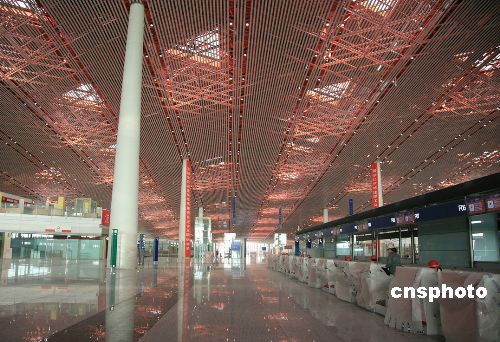 2007年11月6日,被尊稱“國門工程”的2008年北京奧運會項目——首都機場三號航站樓工程露出廬山真面目,內(nèi)部精裝修、機電設(shè)備、信息系統(tǒng)等項目基本完工,近日進行驗收。首都機場三號航站樓是北京2008年奧運會項目,該航站樓總建筑面積90.2萬平方米,長2900米,寬790米,建筑高度45米,由T3A主樓、T3B國際候機指廊、T3C國際候機指廊組成,其中三號航站樓主樓建筑面積達55萬平方米,是國內(nèi)目前最大的單體建筑。中新社發(fā) 洪濤 攝