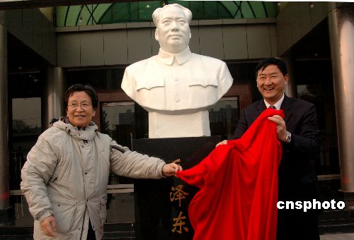 11月6日,毛澤東主席女兒李訥同志來到了紅色企業(yè)——河北晶牛集團(tuán)。她代表毛澤東同志親屬為晶牛新落成的毛澤東塑像揭幕。中新社發(fā) 洪生 攝