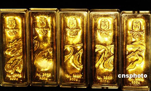 2007年11月10日,北京金博會上的全套“北京奧運金”本色系列組合成一條完整的龍亮相。據(jù)稱“龍尾”奧運金條將在本月陸續(xù)在全國上市!氨本⿰W運金”是世界上第一套具有奧運概念的紀念金條,其每組的含金量均為99.99%,按重量分為50克、100克、500克和1000克四種規(guī)格,每組限量發(fā)行2008公斤。中新社發(fā) 馬健 攝