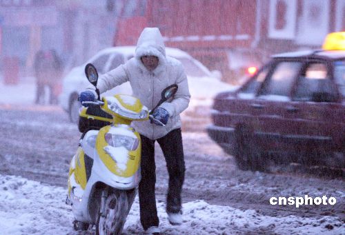 11月19日,隨著一股冷空氣的到來(lái),丹東迎來(lái)中到大雪天氣。降雪伴隨著大幅降溫,迅速形成了大面積的積雪,給交通帶來(lái)不利影響。據(jù)了解,丹東是遼寧此次降雪量最大的地區(qū)。中新社發(fā) 陳浩浩 攝