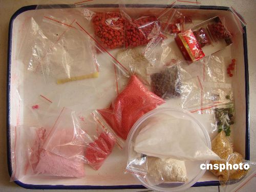 柳州市公安局禁毒支隊近日一舉破獲一個特大地下制造新型毒品窩點,查獲新型毒品“麻古”(冰毒)成品、半成品兩千多克,可疑毒品原料兩萬多克,抓獲涉案人員三名,繳獲一批制造毒品工具。這是今年柳州市警方破獲的最大一起地下制毒案。中新社發(fā) 梁健 攝