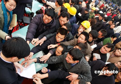 2007年11月30日,鄭州市紫荊山廣場舉辦“情系農(nóng)民工、維權(quán)促和諧——現(xiàn)場受理農(nóng)民工工資支付舉報投訴活動”,活動由河南省勞動和社會保障廳、省建設(shè)廳、省公安廳、省交通廳、省總工會等聯(lián)合主辦,全省各地市同時進行;顒游吮姸嗟霓r(nóng)民工現(xiàn)場投訴,從而拉開了春節(jié)前河南省為農(nóng)民工維權(quán)活動的序幕。中新社發(fā) 馬健 攝