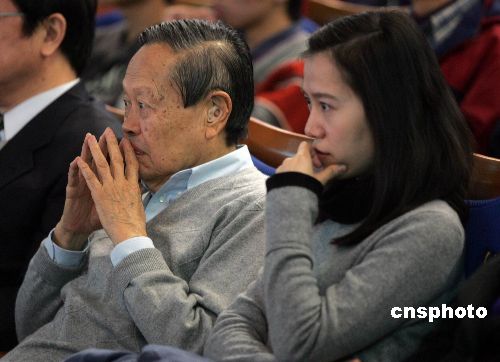 12月3日,數(shù)學(xué)大師陳省身逝世三周年紀(jì)念大會(huì)暨《陳省身與中國數(shù)學(xué)》新書首發(fā)儀式在天津舉行。諾貝爾獎(jiǎng)獲得者、著名華人學(xué)者楊振寧攜妻子翁帆出席紀(jì)念活動(dòng)。圖為楊振寧夫婦聆聽陳省身先生女婿、著名物理學(xué)家、香港科技大學(xué)校長朱經(jīng)武院士的主題演講,演講題為《陳省身先生與我》。中新社發(fā) 祁小龍 攝