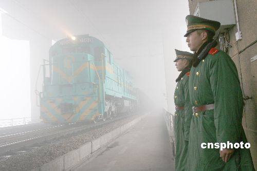 12月20日,武警守橋官兵在南京長江大橋橋面巡邏。連日來,南京遭遇50年來連續(xù)性大霧襲擊,為1951年以來大霧過程持續(xù)時(shí)間最長的一次,南京地區(qū)交通受到嚴(yán)重影響。武警江蘇總隊(duì)南京支隊(duì)守橋部隊(duì)加大巡邏力度,確保交通暢通和過橋行人、車輛安全。當(dāng)日,江蘇省首次大霧紅色預(yù)警信號(hào)。中新社發(fā) 韓華 攝