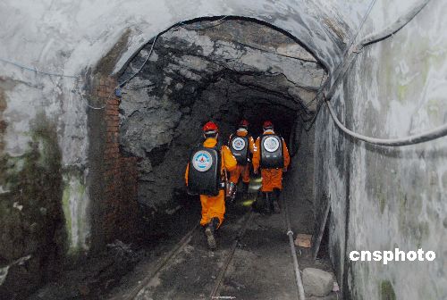 圖為救援人員進(jìn)入失事坑道展開搜救。