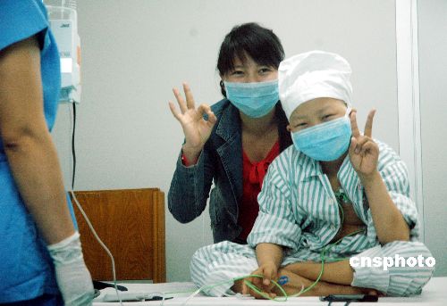 2008年1月11日,安徽省農(nóng)民工家庭患白血病的12歲男孩王武在海南省人民醫(yī)院實施骨髓移植手術(shù)獲得成功,歷時23天走出移植倉,轉(zhuǎn)進“過渡病房”進行后期治療。王武的姐姐曾要以青春和婚姻作抵押為弟弟換取醫(yī)療費,感動了社會各界人士。海南省紅十字會為王武舉行了海南首次話劇專場義演進行募捐,截止目前社會各界共為他捐助了27萬多元。中新社發(fā) 善平 攝