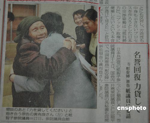 八十歲高齡的海南“慰安婦”受害者原告代表黃有良老人一月十九日深夜從東京返回?。老人披露,二審?fù)彆r,法官除詳細地了解老人受凌辱的事實經(jīng)過外,還首次詢問“慰安婦”經(jīng)歷給原告后來六十多年人生帶來的不幸尤其是造成的精神創(chuàng)傷。二00一年七月,黃有良等八名海南“慰安婦”受害幸存者向日本政府提起訴訟,要求日本政府公開道歉還其清白,并給予相應(yīng)賠償。二00六年八月一審敗訴,同年底原告再次上訴。中新社發(fā) 王辛莉 攝