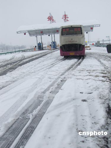 1月20日,安徽六安境內(nèi)合六葉高速公路關(guān)閉,一輛客車滯留在收費站口。該市連日普降中到大雪,南部山區(qū)局部暴雪。降雪已造成該市各縣區(qū)普遍受災,山區(qū)縣災情比較嚴重。目前尚未有人員傷亡報告,全市各縣區(qū)正組織干部群眾全力抗災救災。中新社發(fā) 曉遠 攝