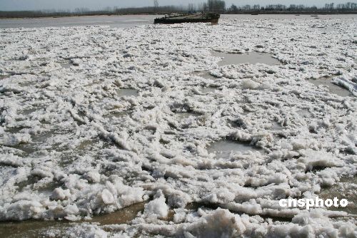 1月24日,從山東省濱州河務(wù)局獲悉,因天氣氣溫低,自黃河開始淌凌以來,山東省黃河淌凌長度已達500公里。黃河濱州段從1月13日開始淌凌到現(xiàn)在已達12天,目前,黃河濱州段淌凌密度達30—35%,最大達到80%,冰塊面積一般在10—26平方米,冰厚2—4厘米,流速在1.2米每秒,河道流量一般在300秒立米左右,遠遠望去,猶如一條白龍,成為一道壯美的景觀。中新社發(fā) 李榮新 攝