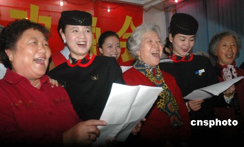 2008年1月24日,位于?谑械暮D峡鞓(lè)夕陽(yáng)敬老園舉辦“敬老愛(ài)老迎春聯(lián)歡晚會(huì)”,來(lái)自全國(guó)各地在該園休閑過(guò)冬的150多名“候鳥(niǎo)老人”與海南航空的20多名乘務(wù)員歡聚一堂,互送新年禮物和互動(dòng)表演文藝節(jié)目,共同歡度了一個(gè)難忘的夜晚。中新社發(fā) 善平 攝