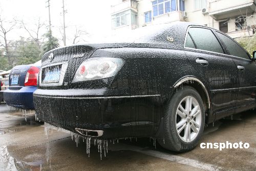 一月二十六日,江西四十二個縣市出現(xiàn)凍雨,是該省近二十年來遭遇的最嚴(yán)重凍雨(雨滴與地面或地物等接觸即凍結(jié)的雨)天氣。由于持續(xù)嚴(yán)寒,整個江西省儼然一個諾大的“滑冰場”,滿街跑的盡是“凍車族”。中新社發(fā) 吳慶才 攝