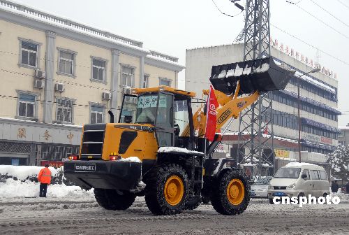 1月30日,連日的暴雪致使省城道路上堆積了大量的積雪,由于氣溫低,道路結(jié)冰,給安徽合肥交通帶來了很大的影響,為了使道路早日暢通,方便車輛和行人的出行,全市廣大干群、環(huán)衛(wèi)工人和大量市民紛紛走上街頭義務鏟雪,還有企業(yè)和個人把自己用于銷售的挖掘機和推土車改裝成鏟雪車開上街頭,義務幫助鏟雪。據(jù)悉,到目前為止,瑤海區(qū)境內(nèi)參加義務鏟雪的工程機械車輛共有9輛。中新社發(fā) 解琛 攝