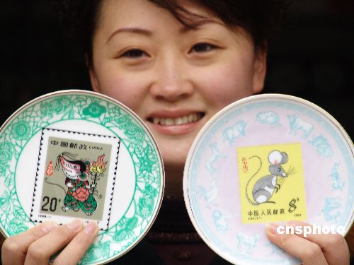 圖:生肖鼠郵票瓷盤景德鎮(zhèn)上市