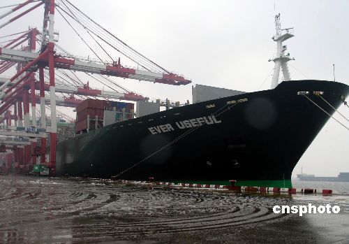 據(jù)上海外高橋邊檢站22日消息,因受風雪影響,從21日中午至22日中午二十四小時內(nèi),全上海港有近五十艘集裝箱貨輪取消或推遲了靠泊計劃,另有近四十艘集裝箱貨輪延遲了出航時間。隨著下午降雪停止,整個上海港集裝箱裝卸作業(yè)因受風雪影響不斷減緩。中新社發(fā) 陸從兵 攝