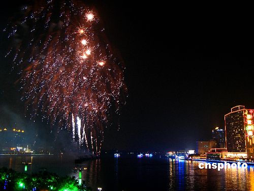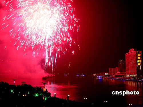 2月7日晚20點30分至21點,2008年廣州市春節(jié)焰火晚會在珠江河段白鵝潭江面舉行。廣州市民及留守外來工一早就前往白鵝潭及珠江岸邊等候欣賞煙花美景。據(jù)了解,本次焰火晚會首次采用了全新的情景劇式音樂敘事燃放模式,采用高科技手段,突出嶺南文化。中新社發(fā) 呂明/吳呂明 攝