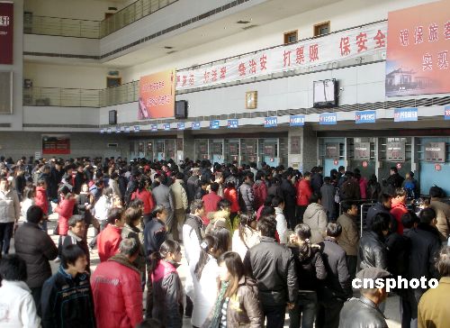 2月9日,蘇州火車站售票大廳內(nèi)擠滿了排隊(duì)預(yù)購返程火車票的乘客。新的休假辦法的實(shí)行,春節(jié)后上班日期由以往的正月初八變更為初七,因此購票高峰也提前到來。當(dāng)日,蘇州火車站售票大廳內(nèi)人潮涌動(dòng),許多旅客紛紛提前購買返程火車票。中新社發(fā) 王建康 攝