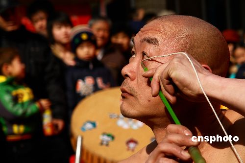 2月10日,在天津樂(lè)園春節(jié)廟會(huì)上,來(lái)自民間的藝術(shù)家表演了中國(guó)民間古典絕活,讓節(jié)日游園的市民大飽眼福。中新社發(fā) 展曉仁 攝