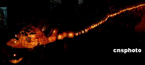 2月13日晚,在江西婺源清華鎮(zhèn)街頭,200余名農(nóng)民舞動(dòng)著長(zhǎng)近200余米的“板凳龍”。據(jù)悉,該制品由200多個(gè)花燈和上百個(gè)農(nóng)家板凳連接而成。中新社發(fā) 王國紅 攝