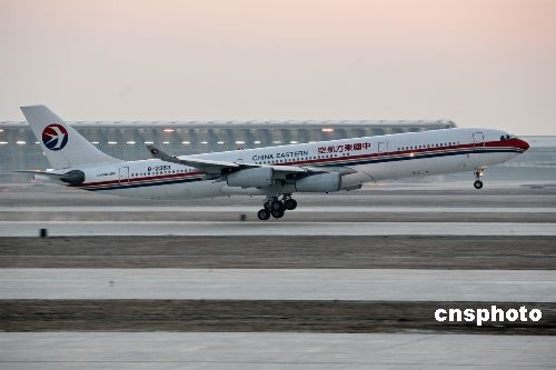 二月十九日清晨,中國東方航空公司的一架空客A三四○-三○○大型客機(jī)在上海浦東國際機(jī)場第三跑道試飛成功,這標(biāo)志著歷時近兩年建設(shè)的浦東機(jī)場第三跑道工程,已全面具備了飛行營運(yùn)條件。據(jù)悉,浦東國際機(jī)場第三跑道將于今年三月正式啟用,屆時將可起降目前全球最大型的A三八○客機(jī)。中新社發(fā) ;萦 攝
