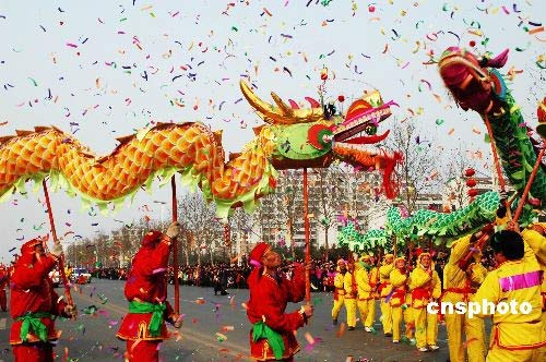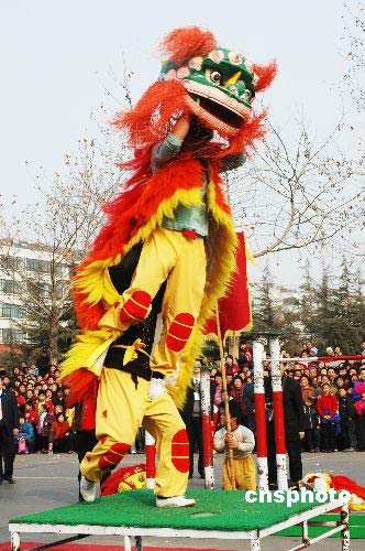2月20日,山東淄博周村區(qū)舉行元宵節(jié)民間藝術文藝匯演,震天的鑼鼓、歡快的秧歌、威武的獅子、翻飛的龍燈以及劃旱船、抬芯子、跑竹馬等民間藝術形式一一上演,讓人們熱熱鬧鬧過元宵。中新社發(fā) 董乃德 攝