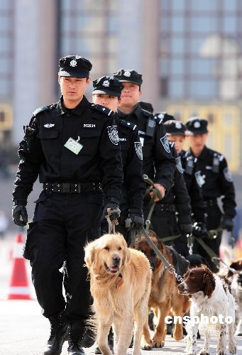 圖:警犬助陣“兩會(huì)”安保工作