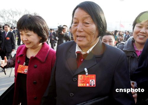 三月五日,連任十一屆全國人大代表、被譽為世界上資格最老的“議員”申紀(jì)蘭,再次來到北京人民大會堂,出席十一屆全國人大一次會議開幕會,繼續(xù)創(chuàng)造政壇“神話”。中新社發(fā) 潘索菲 攝