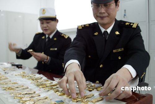 3月5日,遼寧丹東海關(guān)在公路口岸監(jiān)管進(jìn)出境旅客時(shí),從朝鮮入境的兩名中國(guó)旅客隨身攜帶的包裹中查獲涉嫌侵犯知識(shí)產(chǎn)權(quán)的手表共計(jì)88塊,包括勞力士、雷達(dá)、浪琴等六種世界知名品牌。這是丹東海關(guān)自開展知識(shí)產(chǎn)權(quán)海關(guān)保護(hù)工作中查獲的最大一起涉嫌案件。中新社發(fā) 陳浩浩 攝