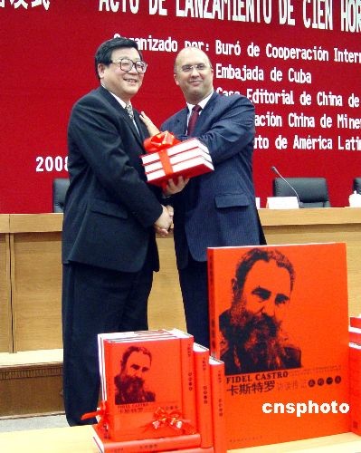 三月七日,古巴領(lǐng)袖菲德?tīng)?#183;卡斯特羅中文版自傳《卡斯特羅訪談傳記:我的一生》首發(fā)式在北京中國(guó)社科院舉行,他親自為該書(shū)撰寫(xiě)了序言《致中國(guó)人民》,并在其中表示“在二十一世紀(jì)的世界形勢(shì)下,應(yīng)該依靠中國(guó)”。圖為中國(guó)社科院副院長(zhǎng)王偉光向古巴駐華大使卡洛斯·米格爾·佩雷拉贈(zèng)送中文版自傳。中新社發(fā) 應(yīng)妮 攝