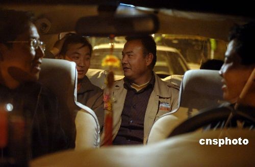 3月24日晚,拉薩火車站廣場外,由于出租乘客減少五位出租車司機坐在同一輛車內消夜等候乘客。3·14事件影響了民眾夜間出行,拉薩出租車乘客銳減。中新社發(fā) 廖攀 攝