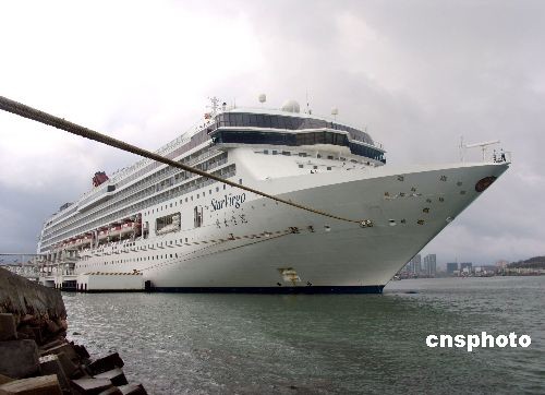 4月1日,馬來西亞麗星郵輪公司旗下大型豪華郵輪“處女星”號(superstar virgo)正式接替“天秤星”號首航三亞,這是一艘目前航行亞洲市場最大、最豪華的郵輪。據(jù)了解,該輪接替“天秤星”號執(zhí)行4月至10月“香港—三亞-越南-香港”定期航線,排水量7.6萬噸,滿載客2800人,船員1400人。據(jù)三亞邊防檢查站介紹,“處女星”號2008年將計(jì)劃?咳齺25個航次,平均每7天一個航班。中新社發(fā) 段中偉 攝