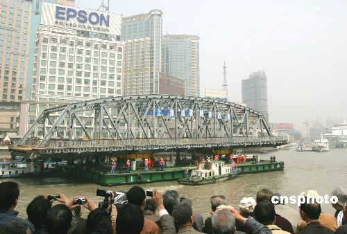 4月6日,上海外白渡橋移橋工作正式展開(kāi)。眾多市民一早就來(lái)到黃浦江畔,爭(zhēng)睹移橋盛況。據(jù)悉,整個(gè)外白渡橋?qū)⒈灰迫牍S進(jìn)行修繕,時(shí)間持續(xù)9個(gè)月左右,明年年初,這座百年老橋?qū)⒂谠粡?fù)原。中新社發(fā) 湯彥俊 攝