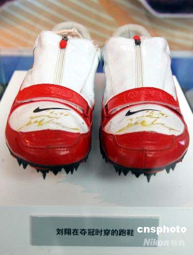 圖:劉翔雅典奪冠時(shí)所穿跑鞋在滬亮相