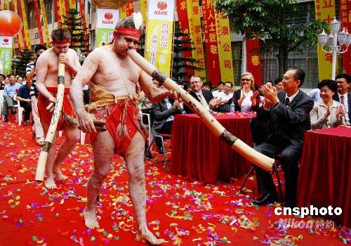 四月三十日上午,“泉州.澳洲文化節(jié)”活動(dòng)在福建泉州開幕。澳大利亞奧本市市長(zhǎng)林麗華女士一行同當(dāng)?shù)仄髽I(yè)家和社會(huì)名流一起參加活動(dòng),旨在通過(guò)文化交流促進(jìn)中澳兩國(guó)的進(jìn)一步合作。圖為開幕式上表演的澳洲土著藝術(shù)文化。中新社發(fā) 傅丹丹 攝