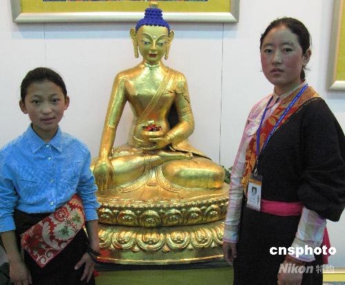 5月6日,在北京中國國際貿(mào)易中心舉辦的“2008北京國際藝術(shù)博覽會”上,西藏攀德達(dá)杰職業(yè)技術(shù)福利學(xué)校學(xué)生展示了該學(xué)校學(xué)生制作德佛教堂卡、佛像等佛教精美工藝作品。參展單位有:中國國內(nèi)外畫廊、藝術(shù)公司、藝術(shù)院校、畫院、藝術(shù)團(tuán)體。作品分為:中國繪畫、西洋繪畫、雕塑、書法、攝影、裝置藝術(shù)等。中新社發(fā) 鄒憲 攝