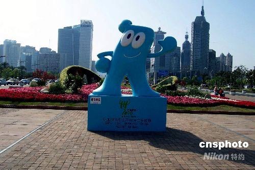 5月7日,上海浦東世紀(jì)廣場的“海寶”雕塑。一批批高大的由玻璃鋼材質(zhì)制成的“海寶”雕塑落戶在上海街頭和社區(qū),增添了“世博”的氛圍,成為一道亮麗的風(fēng)景。中新社發(fā) 周東潮 攝
