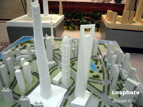 5月7日,上海有關(guān)部門發(fā)布最新環(huán)境評價公示信息,證實上海擬于2008年年內(nèi)開建高達(dá)580米的超高層建筑“上海中心”大廈。這意味著,該建筑將超過492米的上海環(huán)球金融中心和508米的臺北“一○一大樓”,一躍成為“中國第一高樓”。圖為“上海中心”大廈項目建筑設(shè)計的兩大備選方案之一“龍形”(見圖)及周邊環(huán)境模型。中新社發(fā) 許曉青 攝