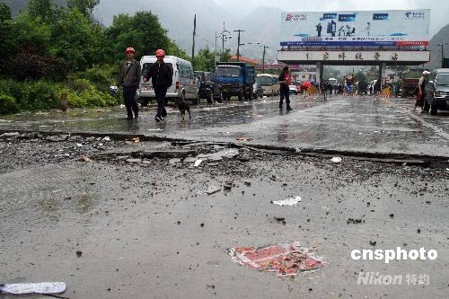 圖:重災(zāi)區(qū)北川道路裂縫嚴重