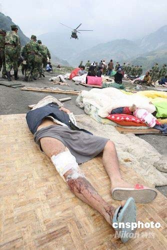 5月15日,武警官兵把等待救助的汶川災民送上直升機,轉往成都救治。中新社發(fā) 張雷 攝