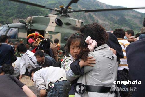 圖:軍用直升機(jī)直落映秀鎮(zhèn)搶救災(zāi)民