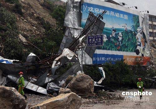 兩名武警搜救隊員5月17日在映秀鎮(zhèn)通往臥龍的303公路上巡查。5月12日發(fā)生的四川汶川大地震,將映秀鎮(zhèn)通往中國國寶大熊貓最主要保護區(qū)臥龍的303公路幾乎徹底摧毀。有專家稱,這條公路短期內(nèi)無法修復(fù)。中新社發(fā) 任晨鳴 攝
