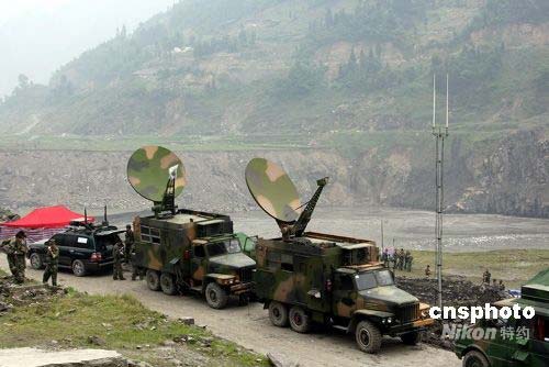 圖:汶川地震災(zāi)區(qū)架設(shè)通信機(jī)站協(xié)助救援