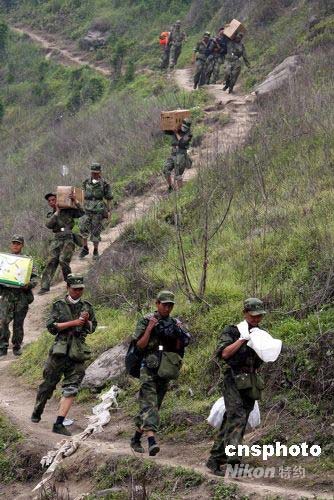 圖:官兵徒步四川重災(zāi)區(qū)運(yùn)送急需藥品