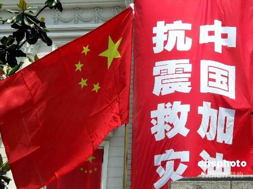 在四川汶川地震發(fā)生后,上海街頭出現(xiàn)多種“抗震救災”公益廣告,呼吁更多的市民加入到為四川地震災民捐款的行列中來。中新社發(fā) 井韋 攝